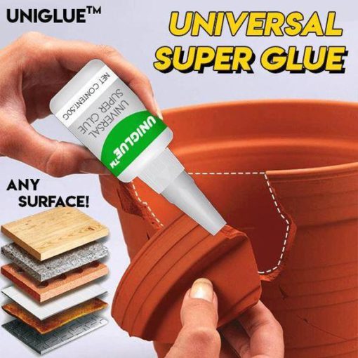 Most universal glue – Bonds well with materials including metal, leather, cork, ceramic, wood, chipboard, fabric, paper, cardboard, rubber and most plastics.