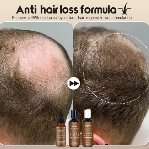 - These Unpree™ Hair Regrowth African Chebe Hair Care Essentials Set come in a shampoo, conditioner, and oil serum where all consists of active herbal blend and anti hair loss fighting ingredients. Each product can penetrate deep into the scalp and bond instantly to the strands from root to tip. Enriching the hair with ample nourishment for them to grow stronger, healthier, and looking fuller in no time.