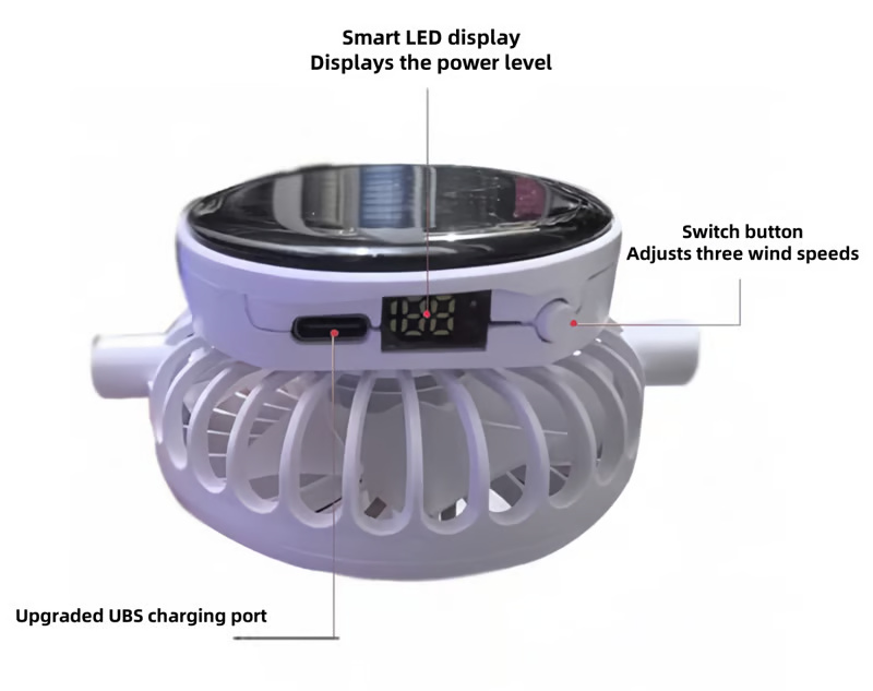 Stay cool anytime, anywhere with two reliable power options. The fan can be powered by solar energy or easily charged via USB.
