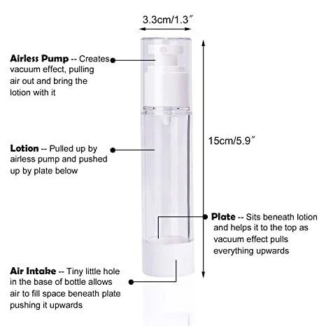 - Airless Vacuum Dispensing— Airless pump technology ensures you’ll keep your products fresh and free from oxidation by preventing them from excessive exposure to air, thus increase product shelf life up to 15% more & NO Odour.