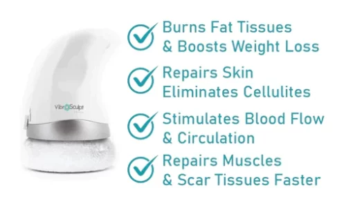 The VibroSculpt™ acts like a cavitation machine for body fat removal. It does this by sending soothing micro-compression vibration waves while spinning at 2600RPM. And that also allows for pampering and smoothing of the skin surface. After using our electric deep tissue massager, not only will you burn more fat, but you’ll also be left with tighter, younger skin, free from cellulites! It’s the perfect addition to any weight loss program!