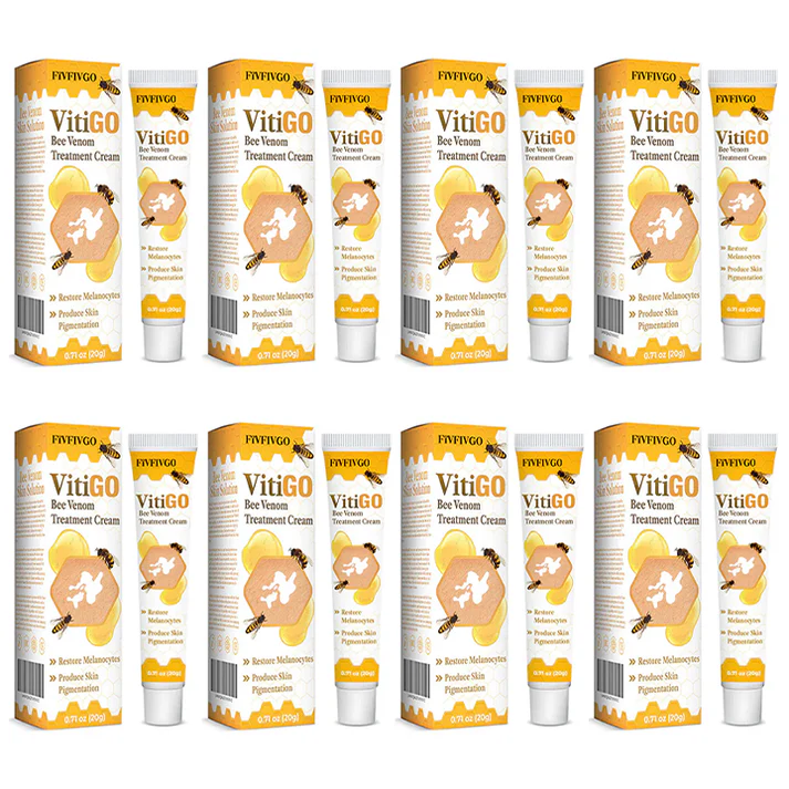 La Crema de Tratamiento de Veneno de Abeja VitiGO ha sido formulada para combatir el vitíligo con las potentes propiedades del veneno de abeja. Funciona mediante la supresión de la respuesta inmune que se dirige a los melanocitos, las células responsables de la pigmentación de la piel. El veneno de abeja también promueve la repigmentación de la piel, disminuyendo eficazmente las manchas blancas y restaurando un tono de piel natural y uniforme.