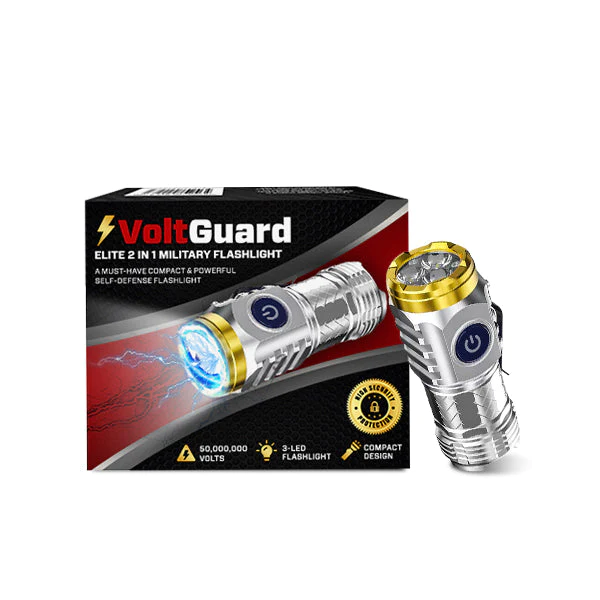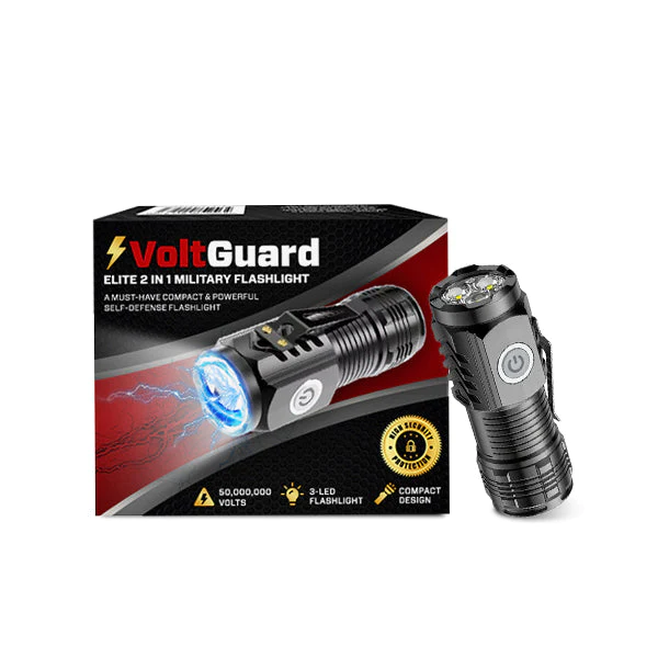 Die VoltGuard Elite 2 in 1 Taschenlampe ist ein leistungsstarkes Selbstverteidigungsgerät, mit dem Sie dem Unerwarteten immer einen Schritt voraus sind. Mit einem 5.000.000 -Volt- Betäubungsgerät soll es Angreifer zu Boden werfen und Ihnen eine einfache Flucht ermöglichen. Genießen Sie die Gewissheit, dass Sie sich schützen können. Bei Aktivierung gibt es einen lauten, einschüchternden Ton von sich, der potenzielle Angreifer abschreckt.