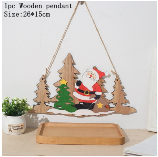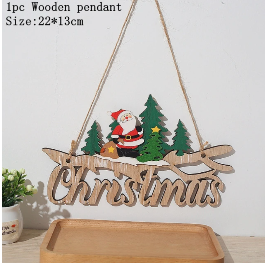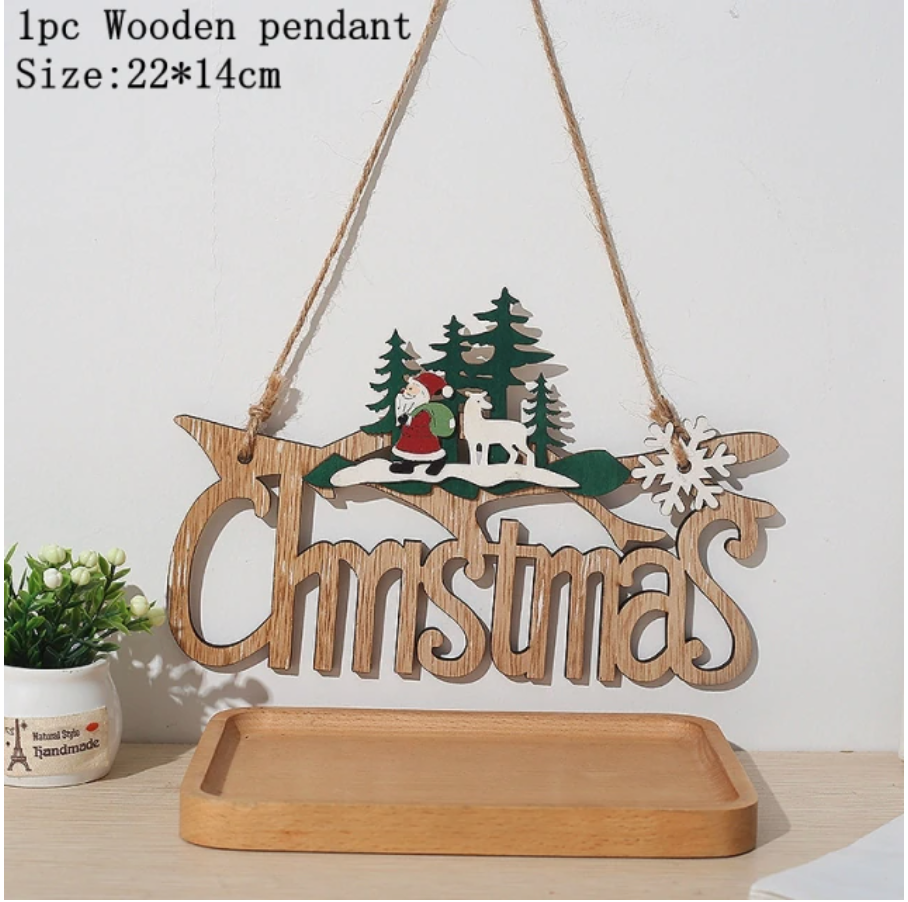 WOOD CHRISTMAS DOOR HANGING WALL – This delightful wooden wall hanging features Mr. & Mrs. snowman, a reindeer, a Christmas tree & a bird with hand painting & die cut wood. It comes with a sturdy hanging cord, so that is is ready to go out of the box.
