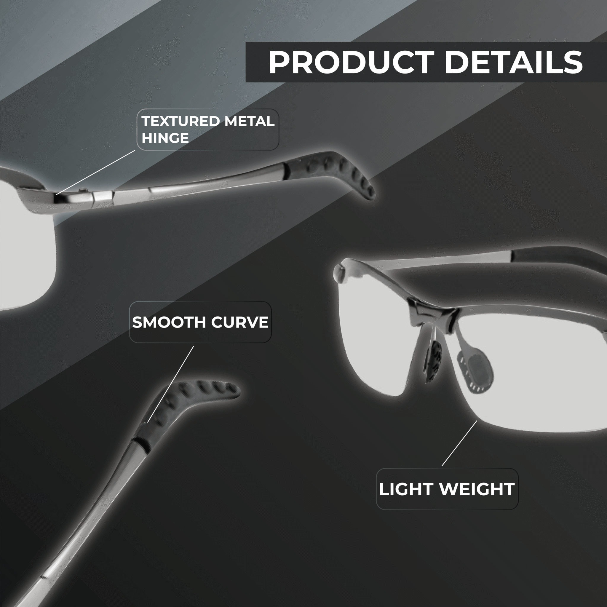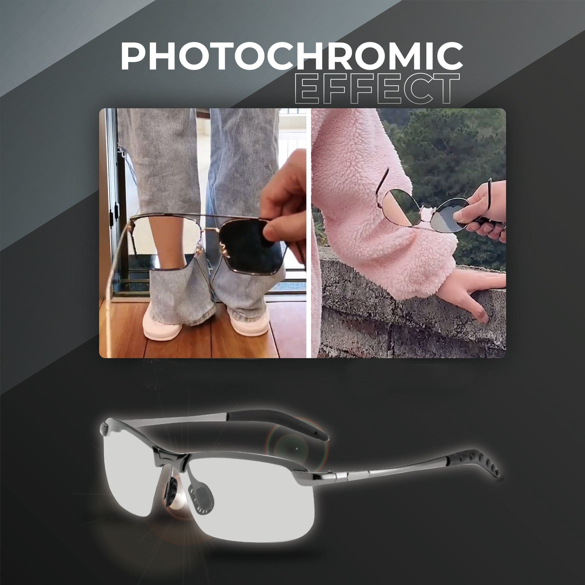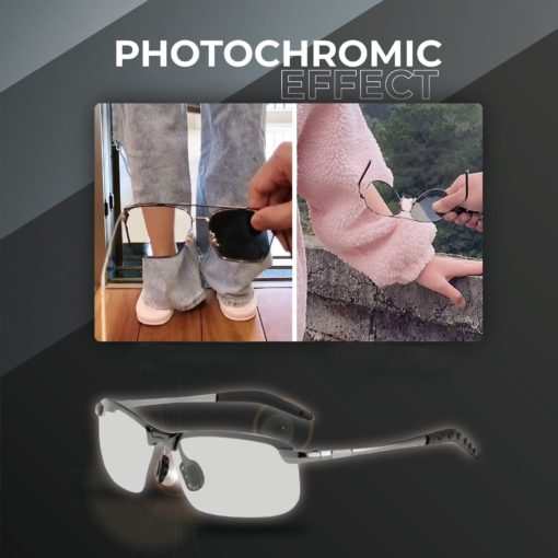 It has a LIGHT-SENSITIVE CHIPS and LIQUID CRYSTAL LENS that PROVIDES a MAGICAL PHOTOCHROMIC LENSES that BASES the INTENSITY of SUNLIGHT and ULTRAVIOLET LIGHT that DARKENS the LIGHT through GREY LENS. The LIGHT has the EFFECT of DIMMING or BRIGHTENING the GLASSES SIGNIFICANTLY.