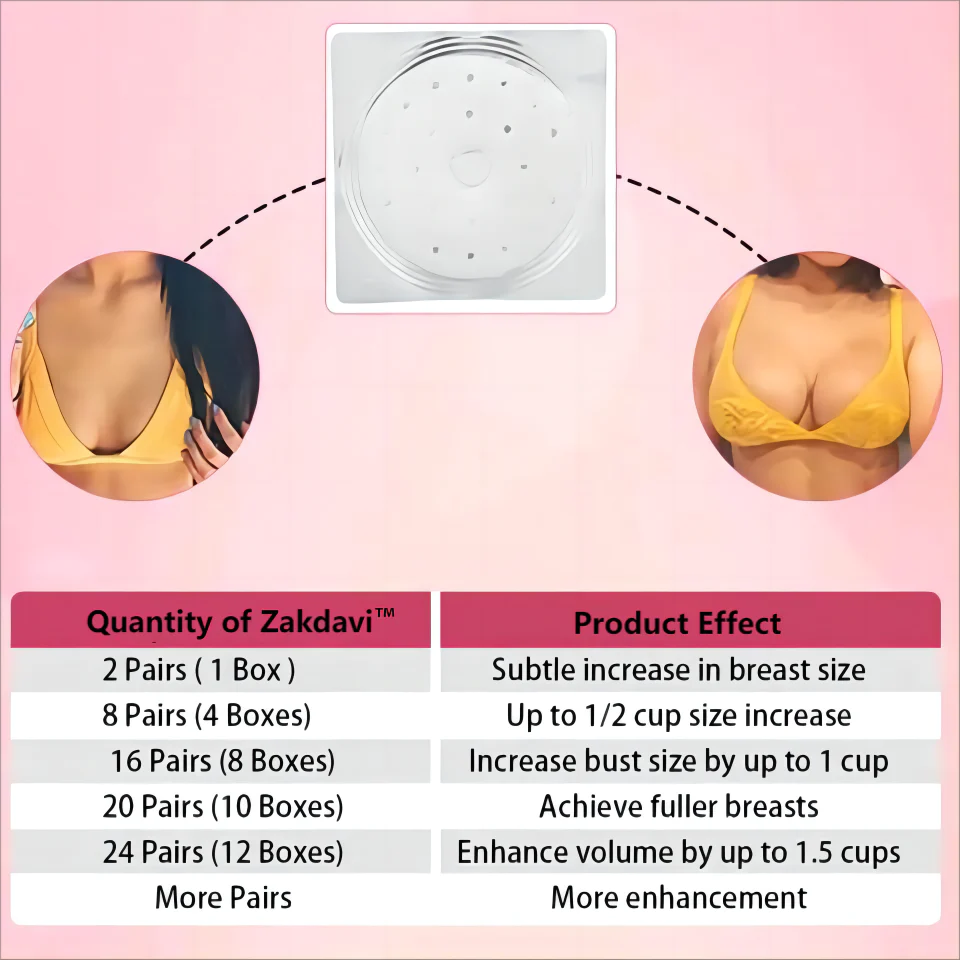 Zakdavi™ Breast Enhancement Patch Mask is not an estrogen and fat based enhancement product, but rather uses Type 3 Peptide Protein to achieve the desired effect. It is specially combined with a natural affinity with the body in peptide protein, which penetrates the glandular vesicles in just 5 minutes. This allows the dry glandular vesicles of the breast to instantly absorb nutrients and grow, and repair the cooper’s ligaments with strong elasticity.