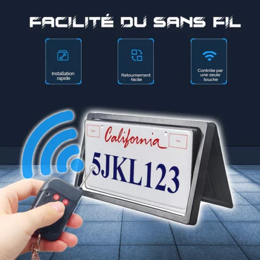Le basculeur de plaque d’immatriculation de voiture consiste généralement en un mécanisme qui peut faire tourner ou basculer la plaque d’immatriculation, lui permettant d’être cachée ou révélée selon les besoins. En activant l’appareil, la plaque d’immatriculation peut être rapidement retournée pour afficher ou cacher la plaque en environ trois secondes. L’objectif de cet appareil est d’offrir de la confidentialité et de la protection au propriétaire du véhicule. Il peut être particulièrement utile dans des situations où la confidentialité est souhaitée, comme lorsqu’on se gare dans des zones publiques ou lorsqu’il est nécessaire d’obscurcir temporairement la plaque d’immatriculation pour des raisons de sécurité.